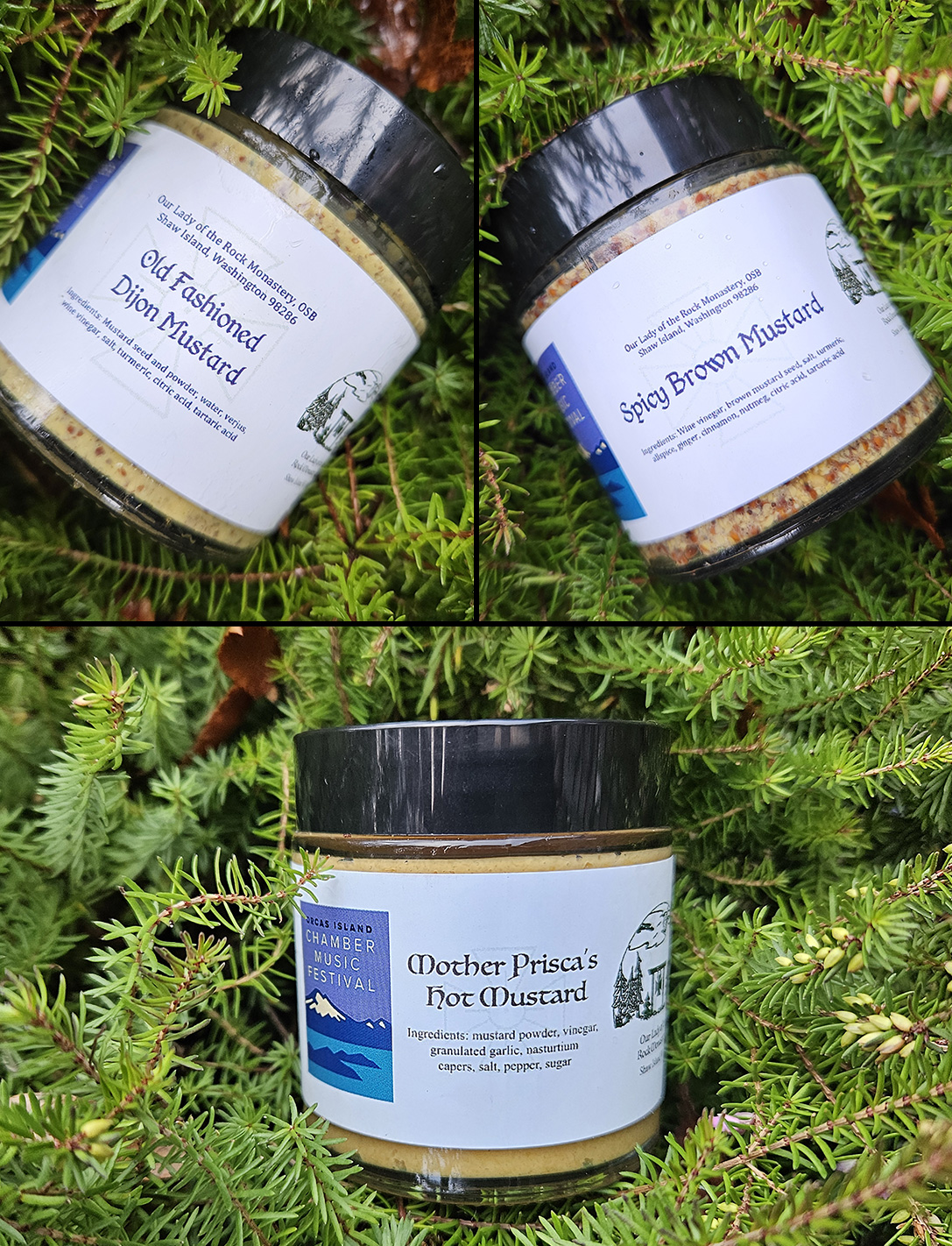 We’re having fun lining up new items for the 2026 Festival! Meanwhile, here is a selection of merch from past seasons – logo socks, hats, shirts, and vests; Shaw Island mustards and herbal tea; Swedish dishcloths to make kitchen clean-up more fun; and, if you have a new car or want to make your old one shine, you need our license plate frame. Happy shopping!